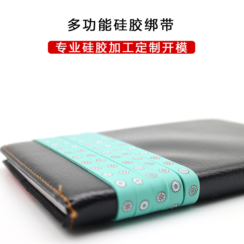 顏色多選可定制,貼片圖案可選,產(chǎn)品小巧便攜,樣式好看??捎糜诒銛y手賬、筆記本等書本的保護(hù)和裝飾,環(huán)保硅膠,書本扎記綁帶,360度柔軟,伸縮彈性,長久耐用,多功能使用,可清洗。